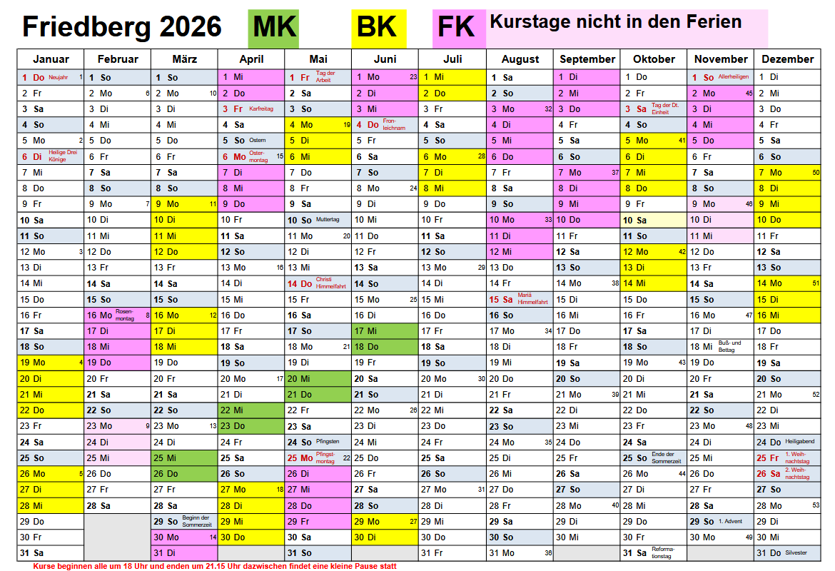 Unsere Theorie Kurse finden immer von 18:00 Uhr bis 21:15 Uhr statt.