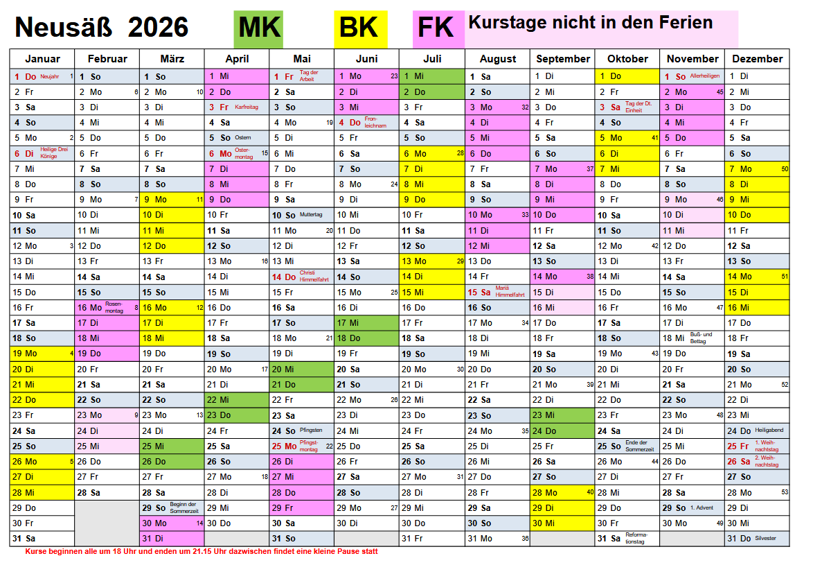Unsere Theorie Kurse finden immer von 18:00 Uhr bis 21:15 Uhr statt.